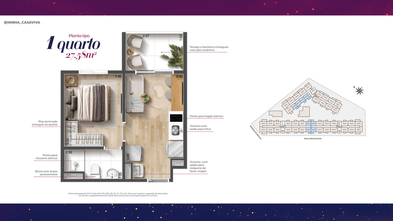 FUTURA REALIZAÇÃO: Casaviva itapua empreendimentos imobiliários spe ltda. Avenida Eliseu de Almeida, 1415, sala 22, 1º andar. CEP: 05533-000 – Instituto de Previdência - São Paulo-SP. Futura Intermediação: CasaViva Consultoria e Vendas LTDA – Avenida Queiroz Filho, 1700 – Sala 18 – Torre E. Vila Hamburguesa. CRECI 35546-J. O empreendimento será comercializado após o Registro do Memorial de Incorporação. Material destinado a pesquisa de mercado, sujeito a alteração a qualquer momento, sem aviso prévio. Os objetos, equipamentos e acabamentos que constam nas imagens são sugestões decorativas, não fazendo parte do Compromisso de Compra e Venda. Imagens ilustrativas.