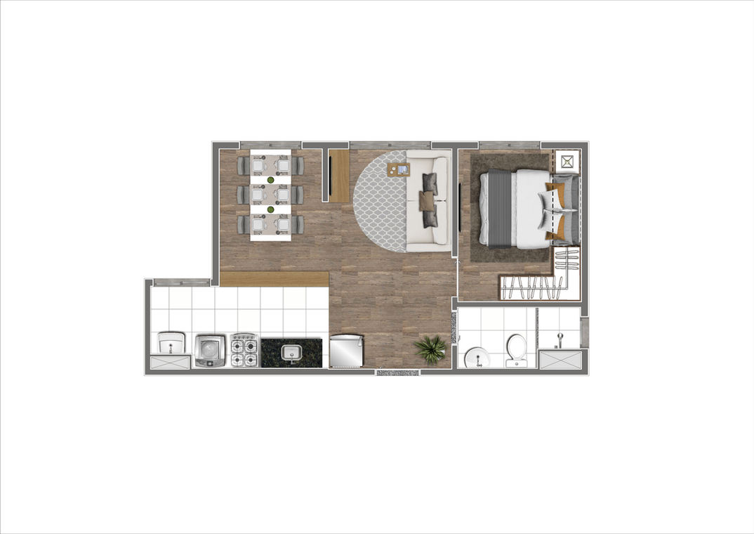 Sala Delivery, Bicicletário, Quadra, Pet Play, Piscina Adulto e Infantil, Espaço Flex, Praças de Convivência, Academia, Salão de Festas, Churrasqueira, Salão de Jogos, Playground, Lavanderia